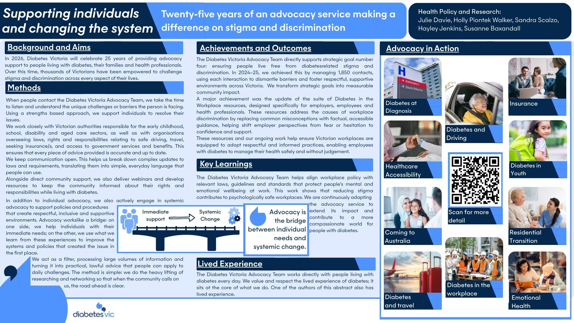 The project is led by two Fellows whose lived, loved, learned and laboured experience spans type 1 diabetes, a new type 2 diagnosis, Indigenous identity, Indian diaspora identity, family caregiving and chronic-disease work. The co-design session with more than two dozen community members shaped every stage—from identifying systemic barriers and emotional triggers to deciding which rights, symptoms and tests to include. Their insights continue to guide the wording, visuals and evaluation of the final tools, ensuring they reflect real needs and restore agency in care.